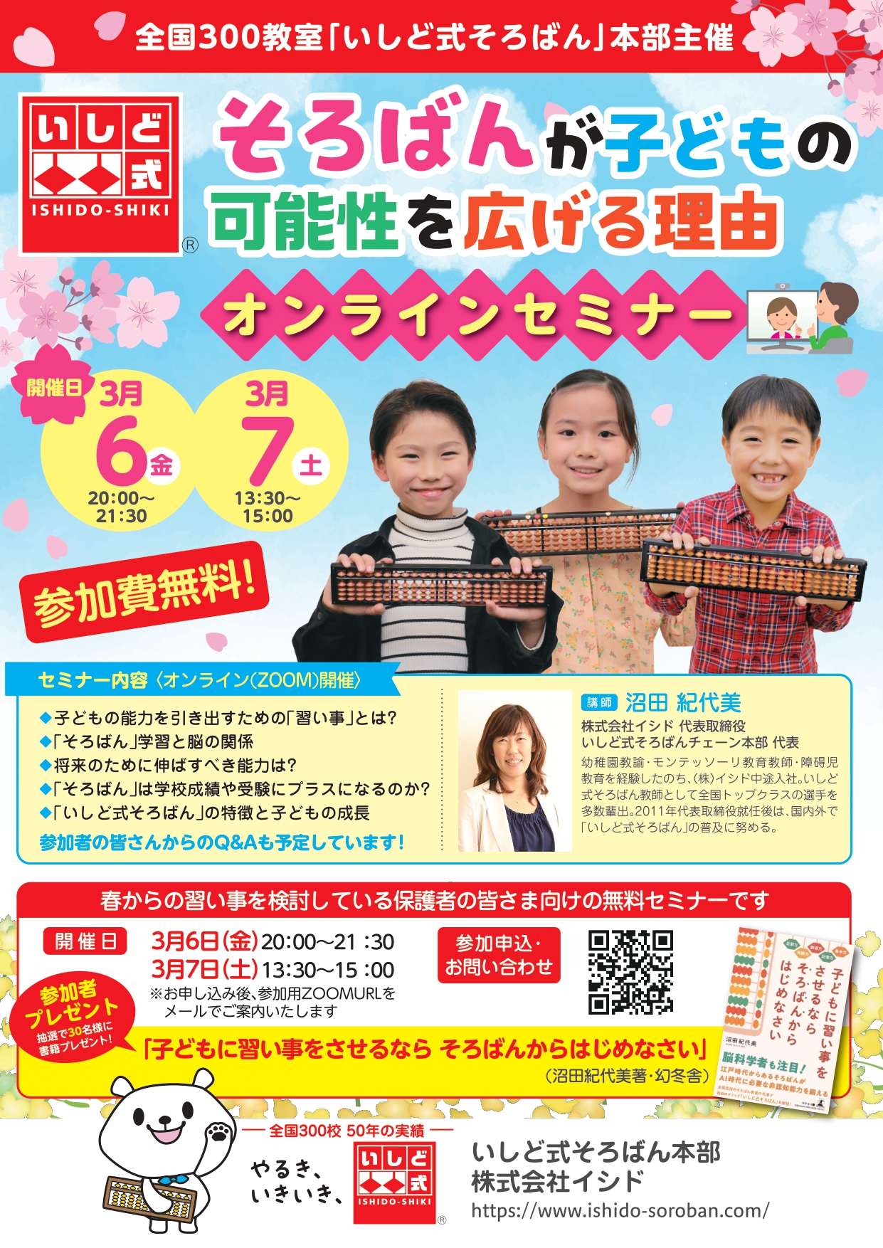 株式会社イシド(いしど式本部)では、春からの習い事に検討している方に向けて、オンラインセミナーを開催いたします。